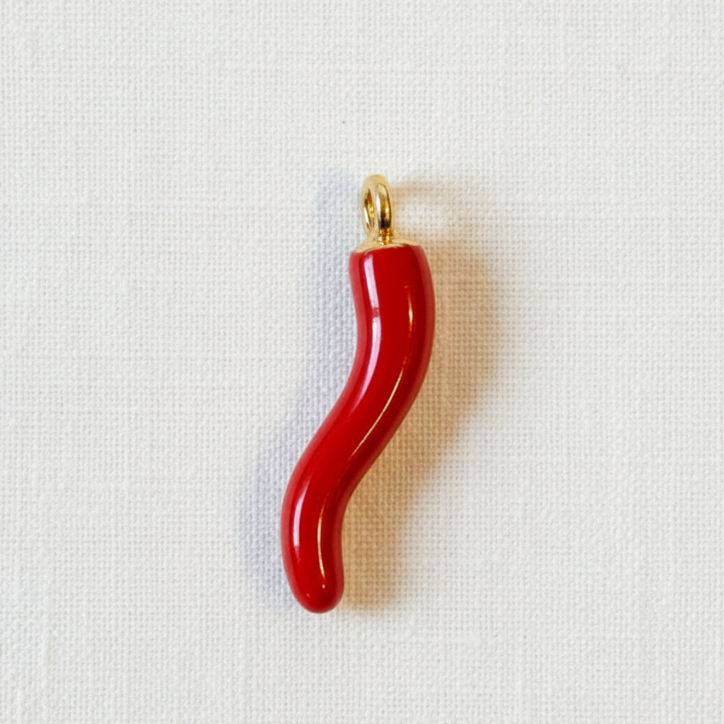 Charm en forma de guindilla esmaltada con acabado brillante y línea fluida. Intenso, original y perfecto para dar un toque atrevido a tu cadena.