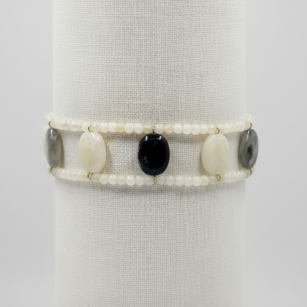 Cuidados: Para que tu pieza se mantenga preciosa por mucho tiempo, póntelo como último paso después de perfumes, cremas y lacas. Evita el contacto con agua, mar, piscina, ducha y gimnasio, así como la exposición prolongada al sol y al sudor intenso. Guárdalo siempre en su bolsita o estuche, en un lugar seco, lejos de la humedad, y por separado para evitar roces con otras joyas. Límpialo con un paño suave y seco; no uses productos químicos ni abrasivos. Trátala con cariño: no lo dobles ni lo sometas a tirones; abre el cierre para ponerlo y quitarlo. Si se moja, sécalo con un paño y deja que termine de airear antes de guardarlo.