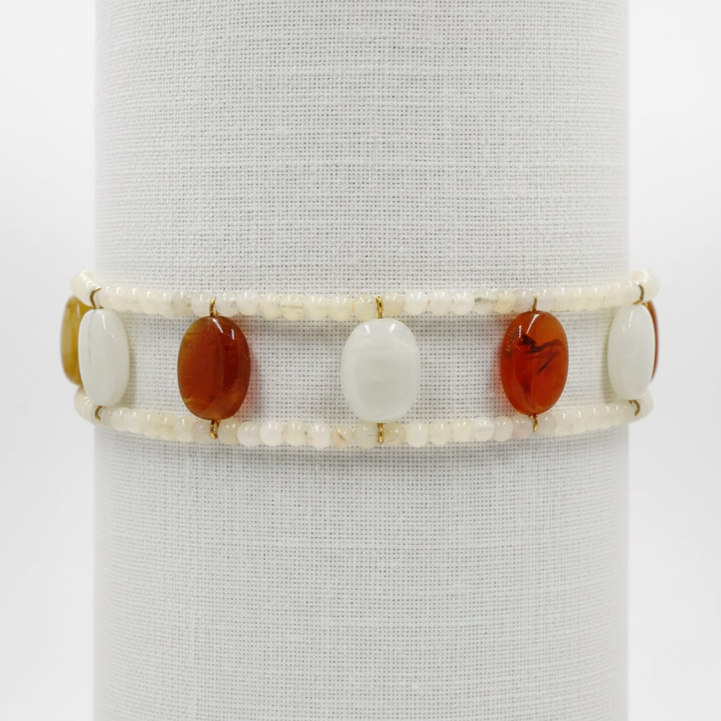 Cada pieza es 100% hecha a mano en nuestro taller, pieza a pieza. Seleccionamos y montamos cada ágata y cada cristal con cuidado para respetar su brillo y su ligereza. Al trabajar con piedras naturales, existen pequeñas variaciones de tono, veta y tamaño: son intencionales y hacen que no existan dos piezas iguales en el mundo. No producimos en serie; personalizamos colores y medidas para ti y revisamos cada pieza antes de enviarla.