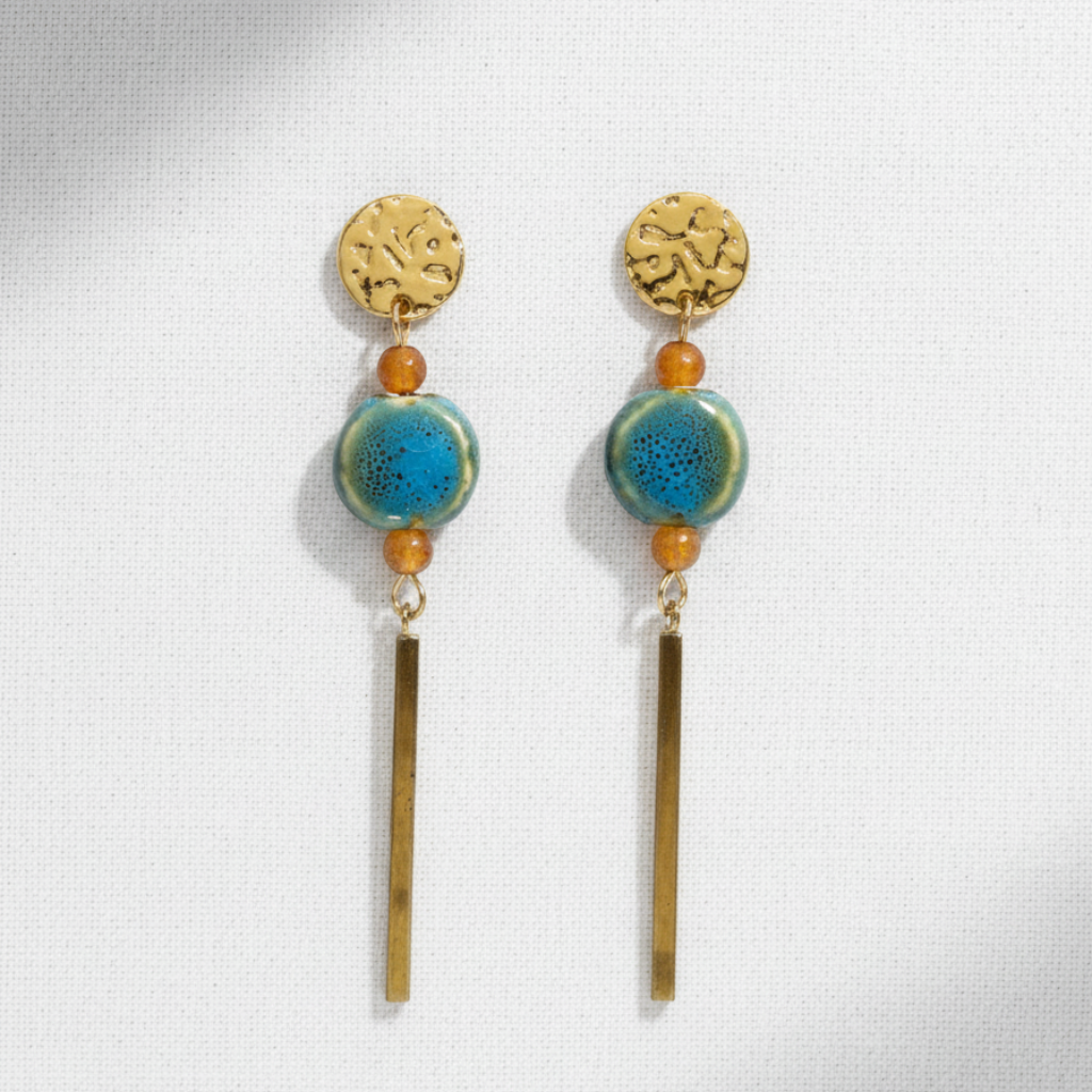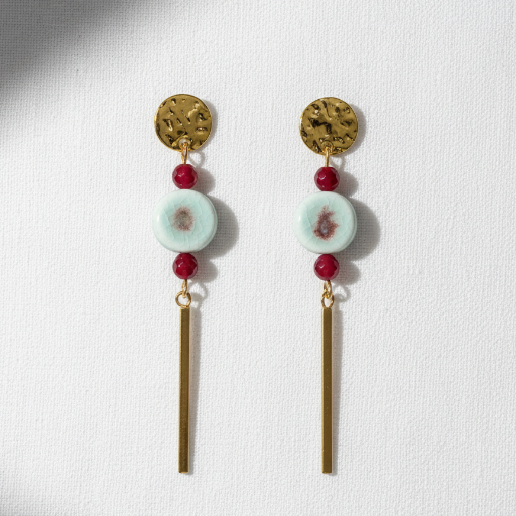 Minimalista, pero con malicia. Cristal y ágata en un pendiente que parece sencillo hasta que te das cuenta de lo bien que queda. Ligero, favorecedor y perfecto para los que prefieren el detalle antes que el exceso.