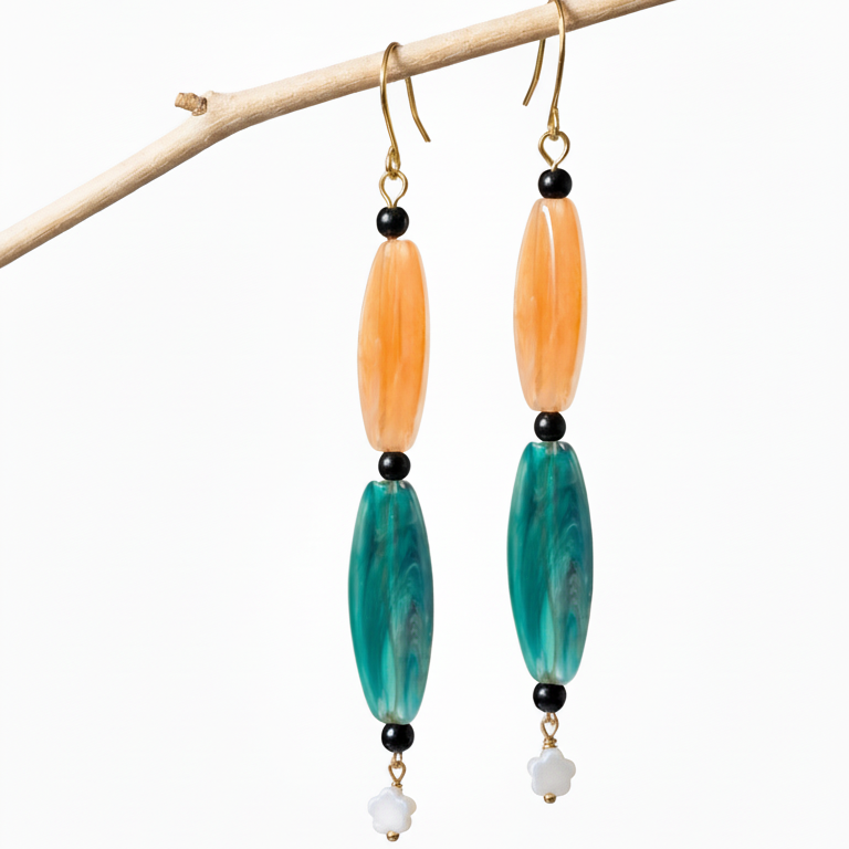 Los pendientes Nyx presentan dos ágathas alargadas separadas por una bolita de ágatha. El diseño, confeccionado en ágatha y acero inoxidable, realza la belleza natural de las piedras y su estructura equilibrada que combina lo estético con lo práctico.