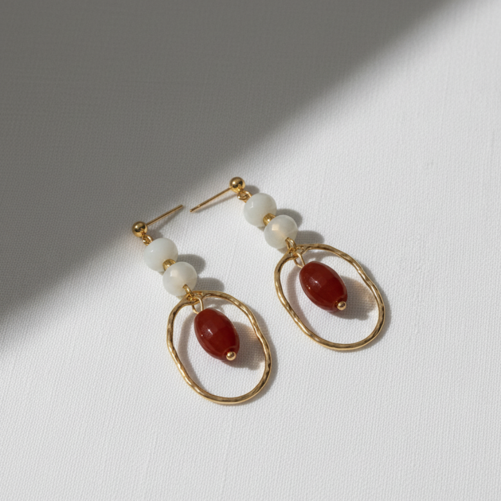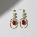 Inspirado en los colores ricos y la historia de Rodas, estos pendientes combinan gemas rojas y blancas en un diseño elegante.